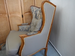 総社市のお客様より張替えのご依頼をいただきました一人掛け椅子(イス)です。