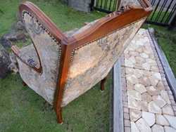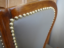 アンティークなデザインの椅子で、真鍮の鋲(ビョウ)をびっしりと打っています。