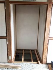 まずは、仏間の補強を行ったあと、柱や鴨居にできた隙間を埋めます。